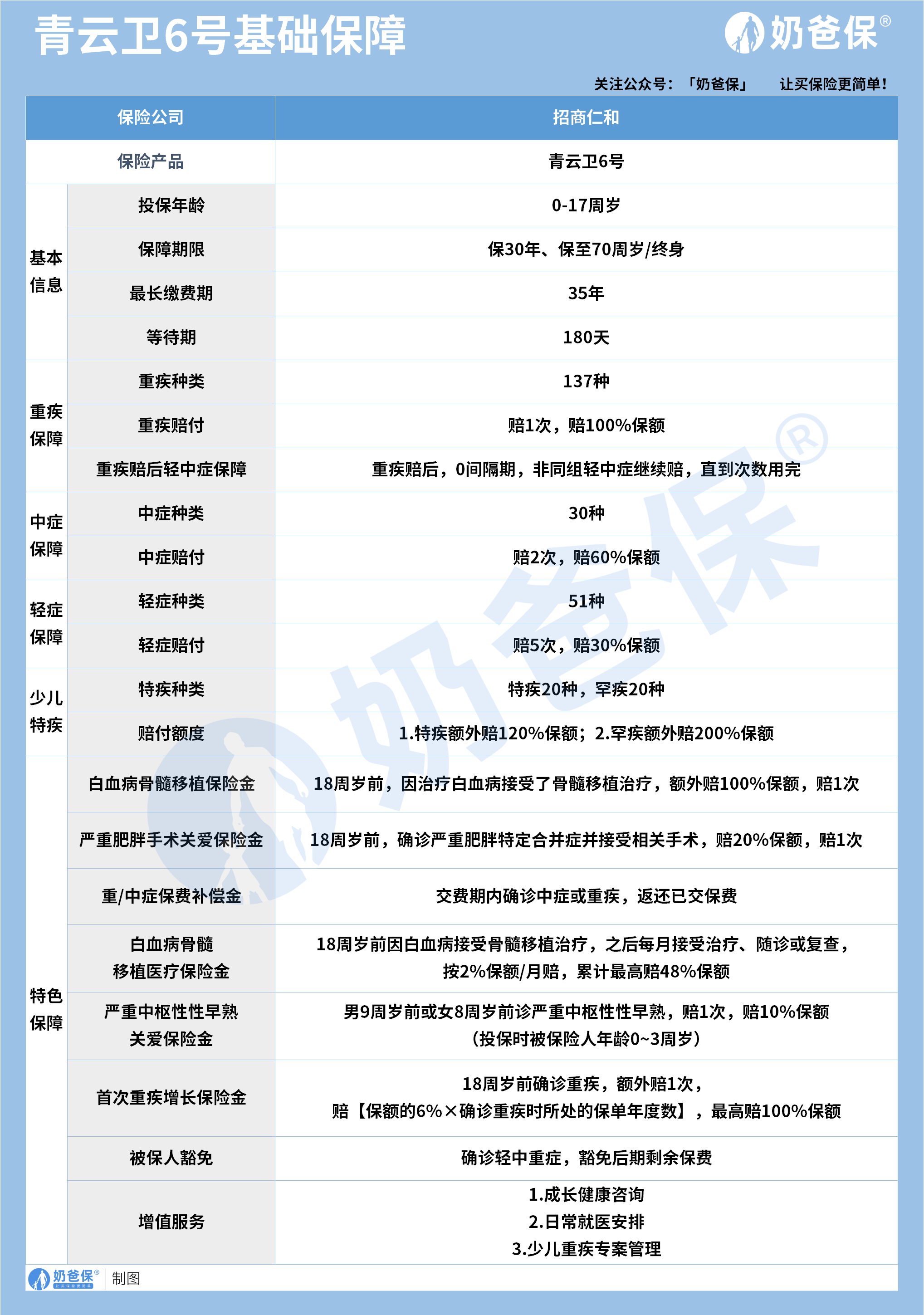 先跟大家说说青云卫6号的基础保障,方便后面对比保费和保障差异。