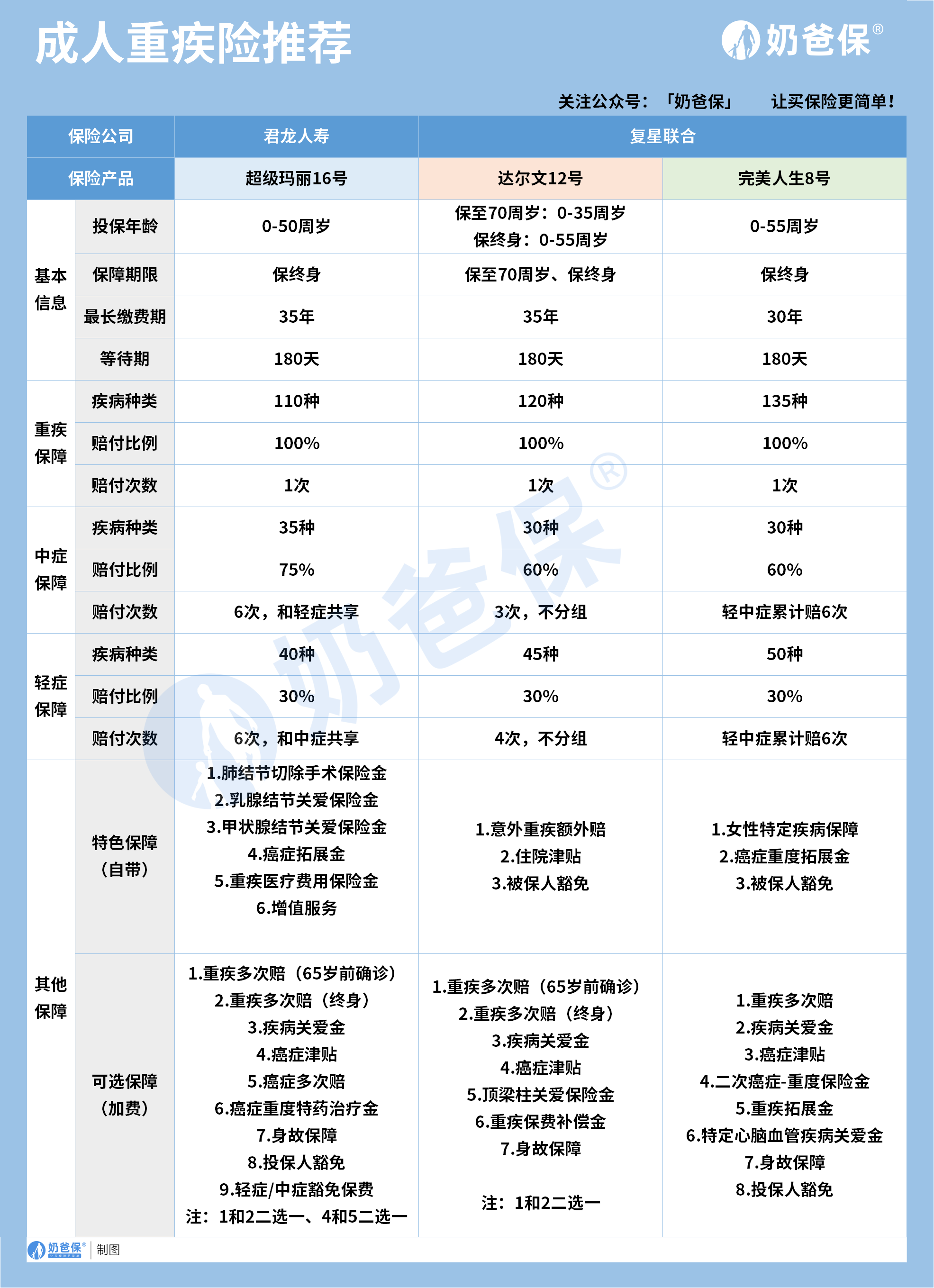 奶爸也给大家推荐几款优质的重疾险产品: