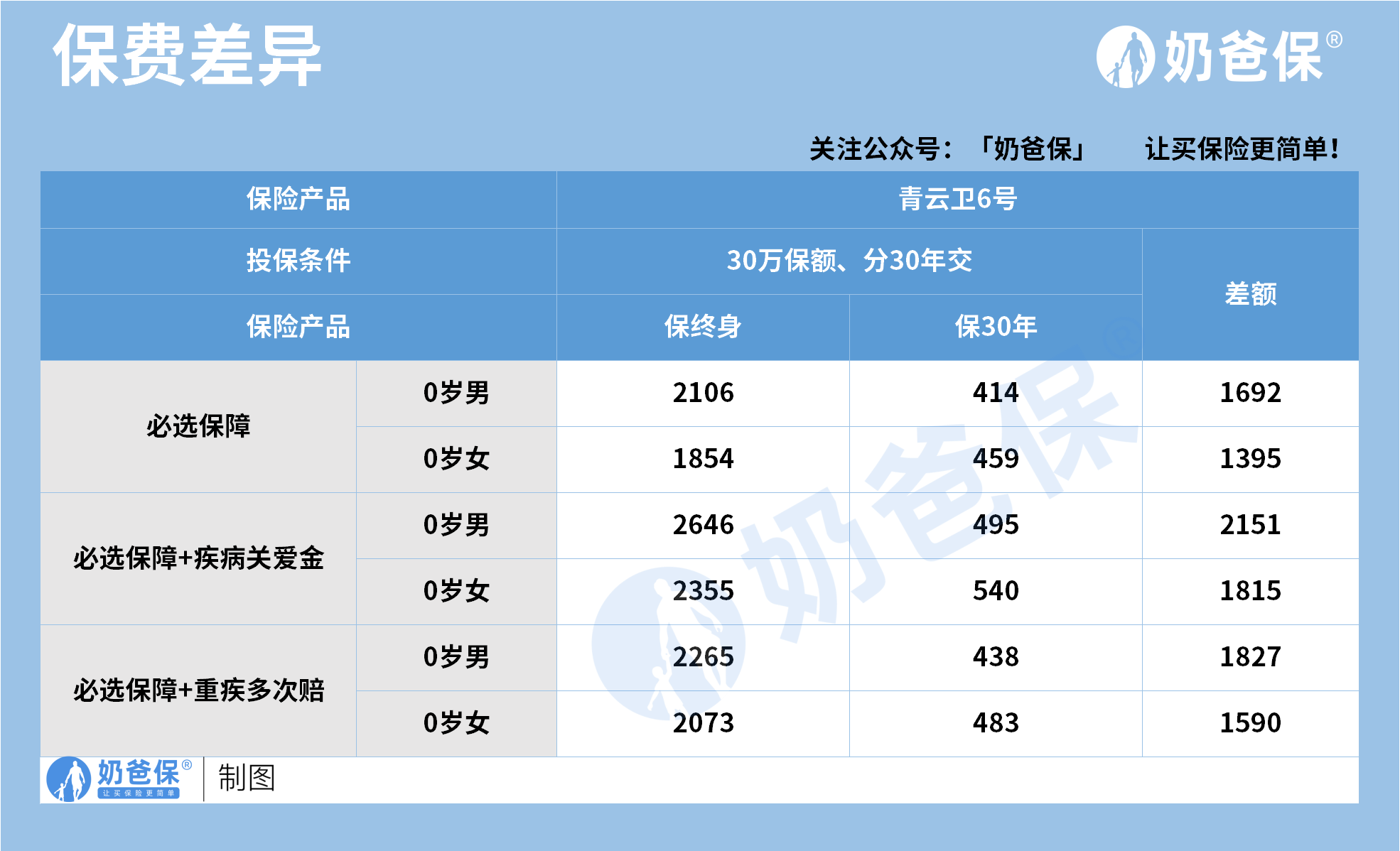 保终身的保费都比保30年高出不少,而且保障责任越丰富,保费差额越大。