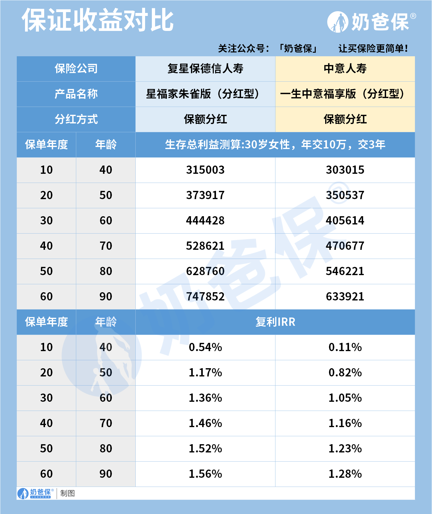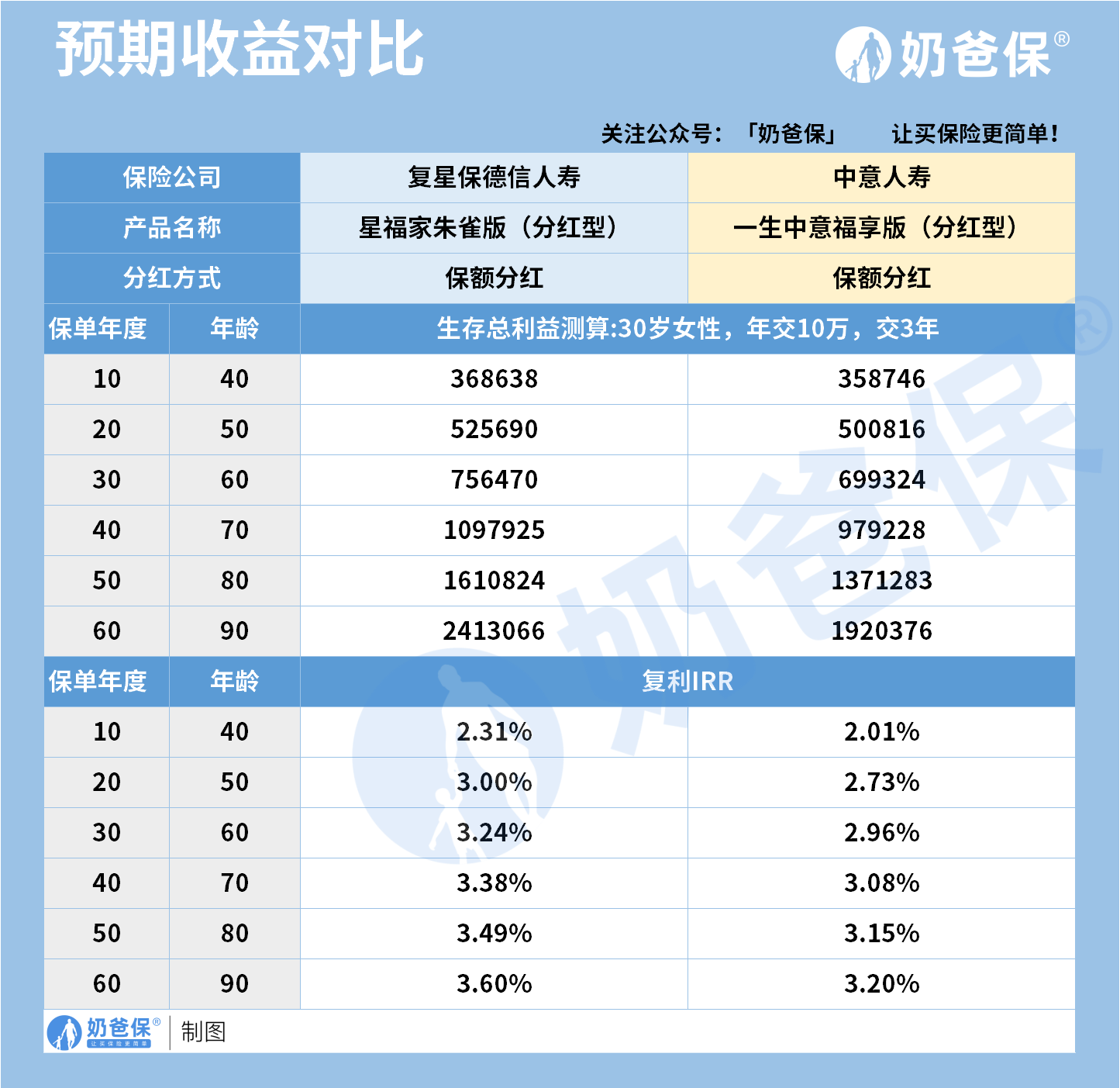 二、星福家朱雀版分红险对比一生中意福享版,哪个收益更高?