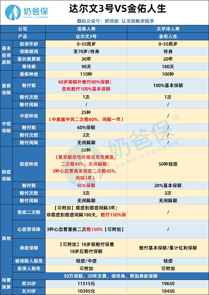 这位朋友你好,关于达尔文3号对比金佑人生,疾病保障谁更全面的问题,奶爸在这里整理了有关达尔文3号和金佑人生的相关内容,希望对你有帮助: