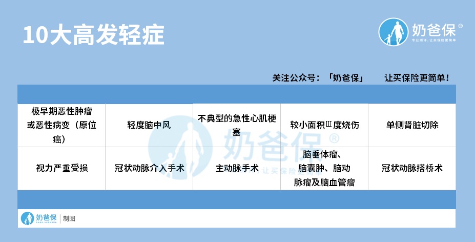 奶爸这里列举了10大高发轻症(如下图):