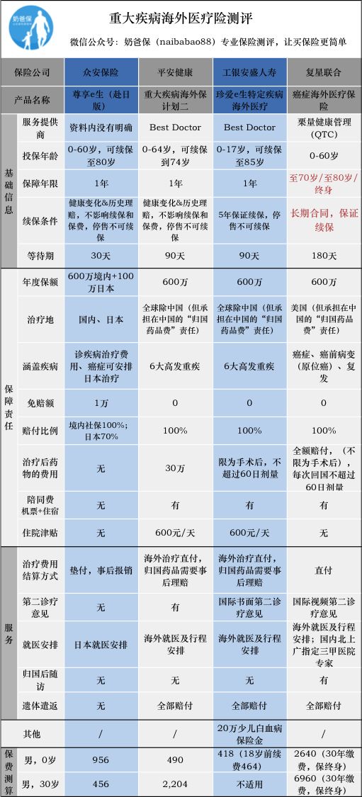 百万医疗险用高杠杆对抗疾病费用的风险,是奶爸最推崇的医疗险,没有之一。不过,国内医疗资源紧张,就算百万医疗险在手,看病难的问题仍然存在;最先进的医疗技术有时候在国内并不能实现,出国就医的需求也不小。