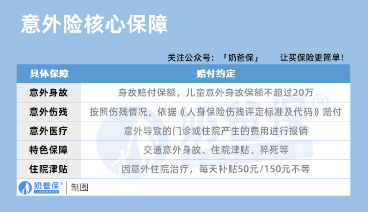 此外,不同的意外险产品会有各自的特色保障,如意外烧烫伤、误食异物、意外骨折、意外住院津贴和第三者责任等,家长应根据孩子的实际情况和需求进行选择。