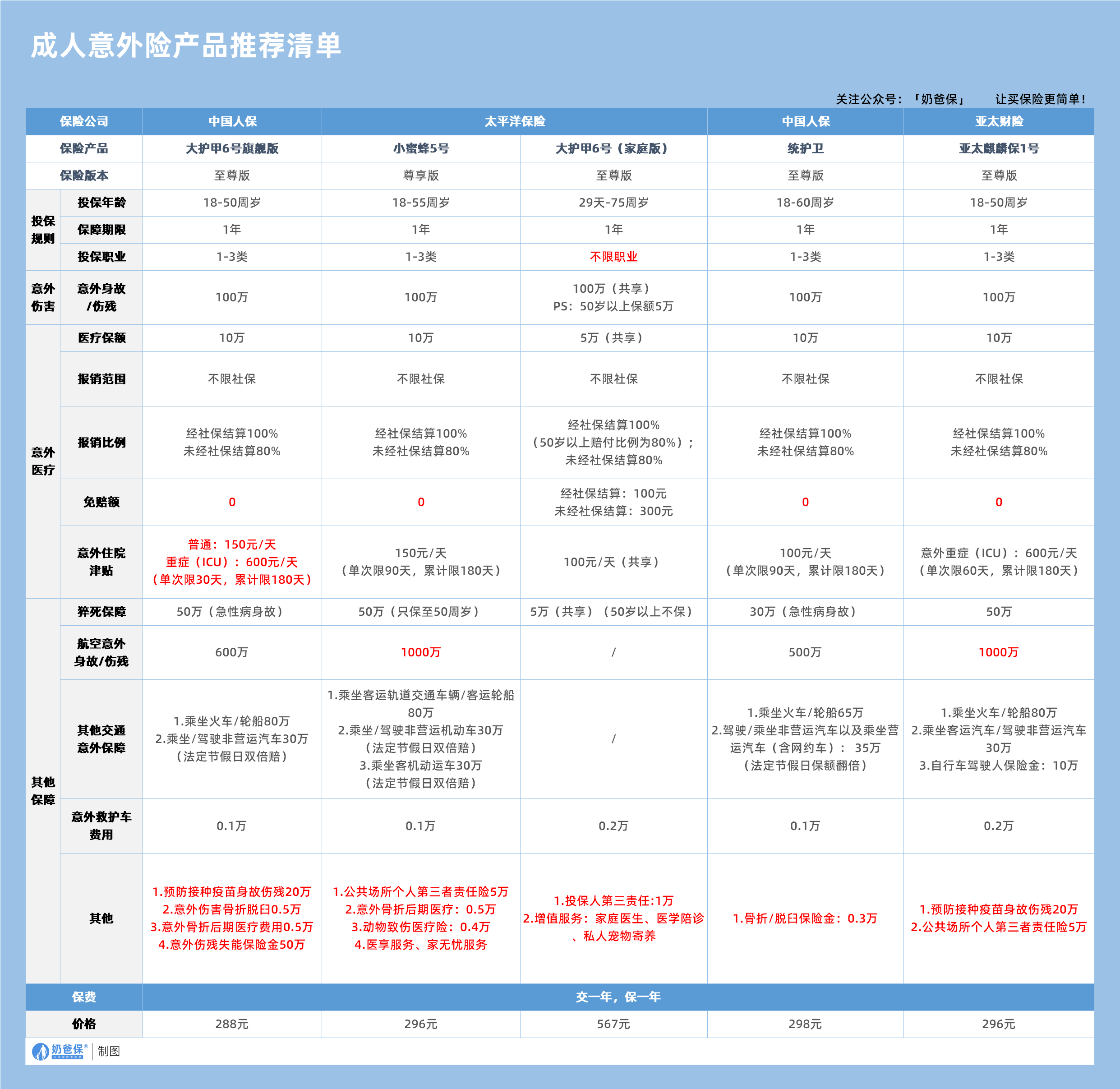 奶爸也给大家推荐几款优质的短期意外险产品: