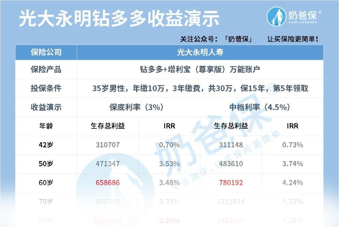 所以想锁定长期利率,抵抗利率下行的朋友,可以考虑光大永明钻多多年金险。
