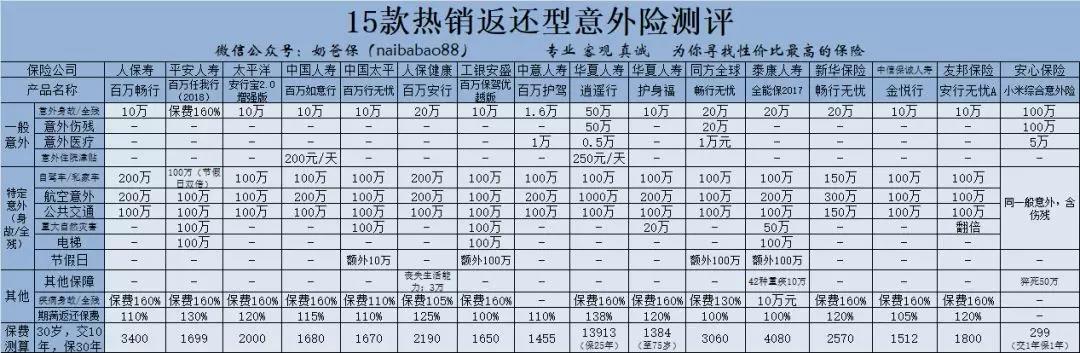 为了让大家能全面了解返还型意外险,奶爸整理了目前市场热销的各种返还型意外险,本次测评的涉及的产品有: