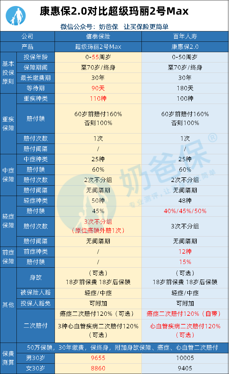 那么,康惠保2.0对比超级玛丽2号Max,哪款的性价比更高呢?