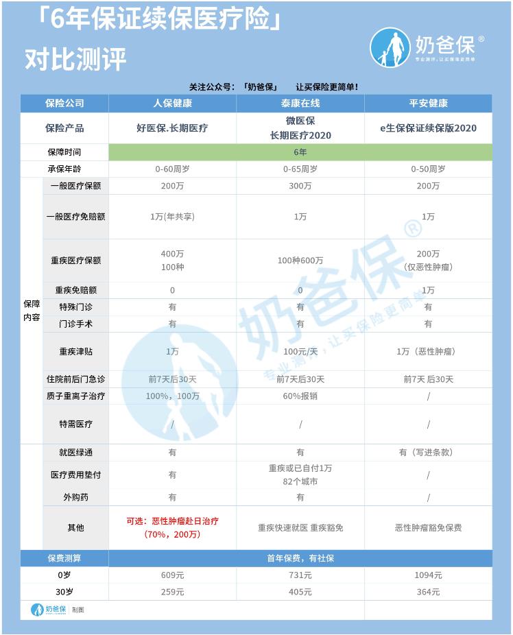 奶爸专门筛选了几款6年保证续保的医疗险产品,方便大家对比挑选: