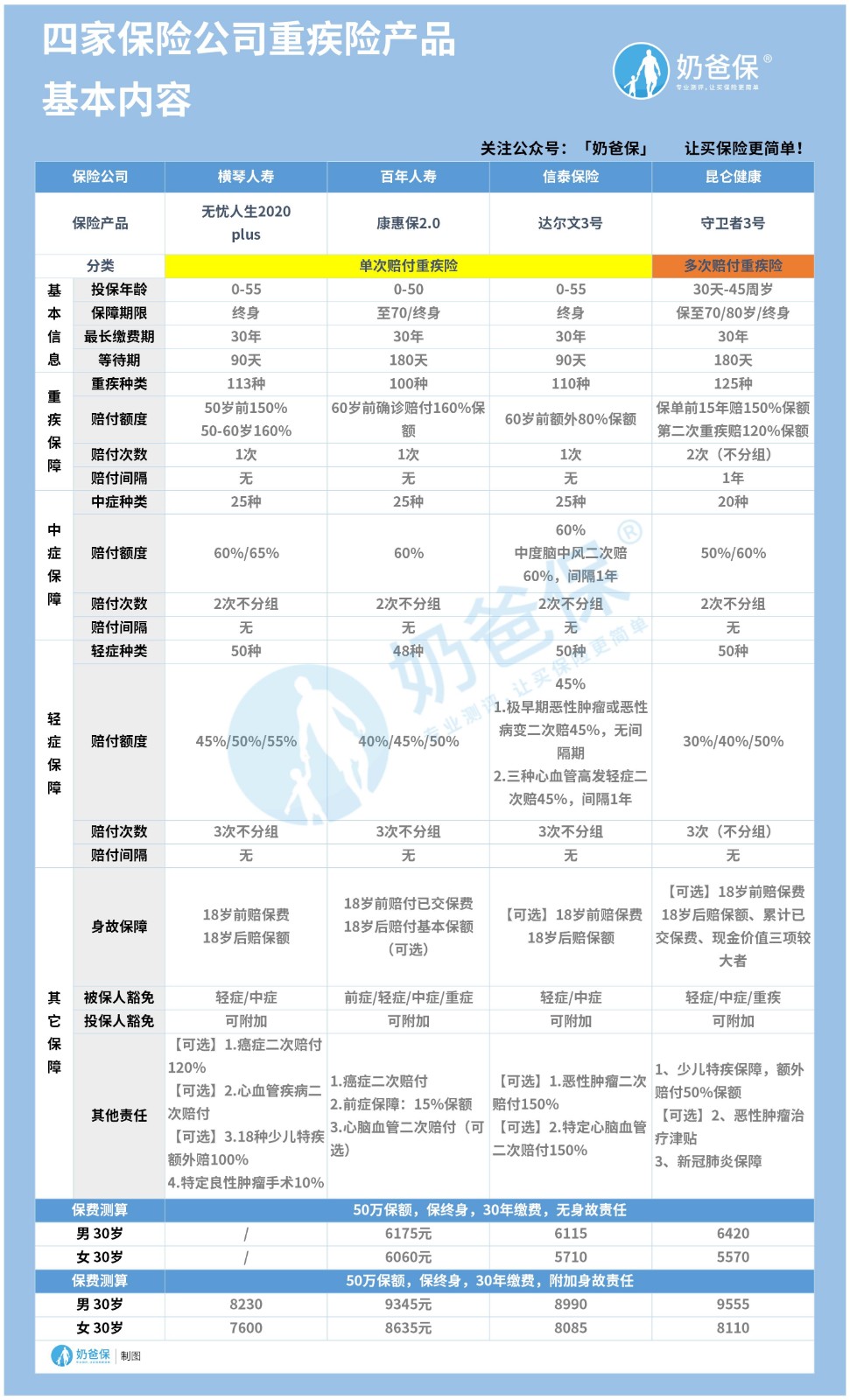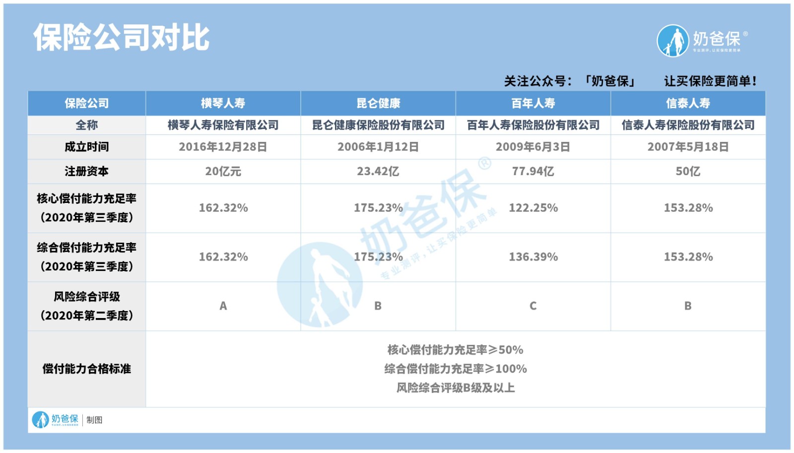 如果要说重疾险哪个保险公司性价比高,奶爸想到了四家保险公司——横琴人寿、信泰保险和昆仑健康和百年人寿