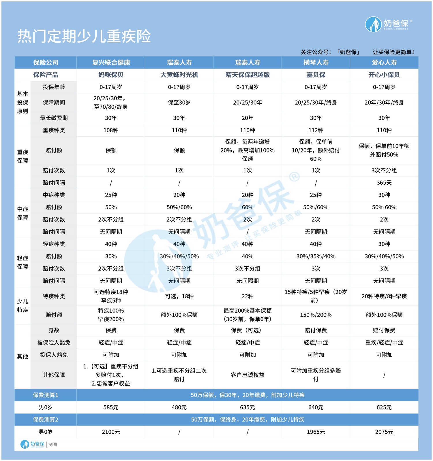 上面讲了儿童适合买少儿重疾险、少儿意外险和少儿医疗险,下面奶爸就分别来讲一讲它们的热门产品,让大家看一看它们的保障到底如何,是否值得买。