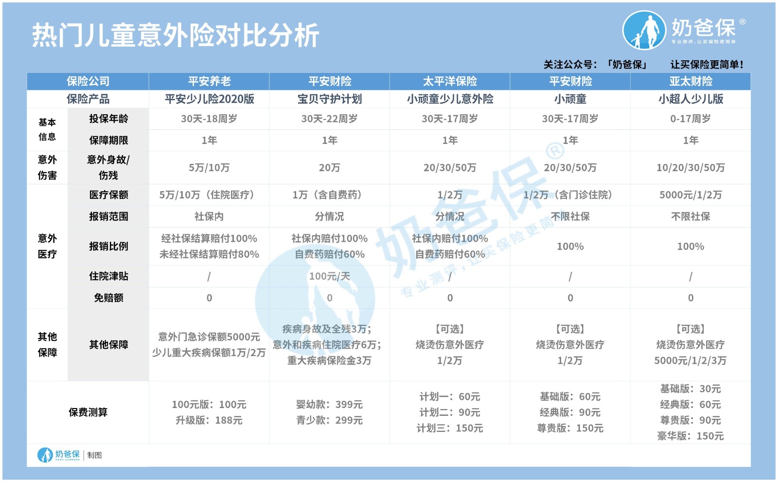 2.意外烧烫伤保障好:太平洋小顽童少儿意外险、平安小顽童和亚太小超人少儿版。