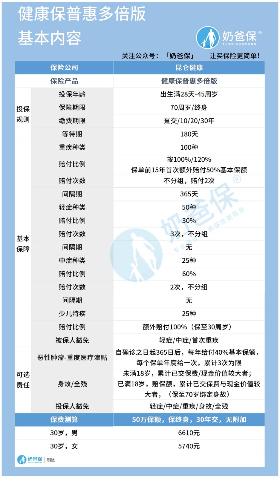 为了让大家更好地认识昆仑健康保普惠多倍版,奶爸已经将收集到的产品信息集中在一张表格中。