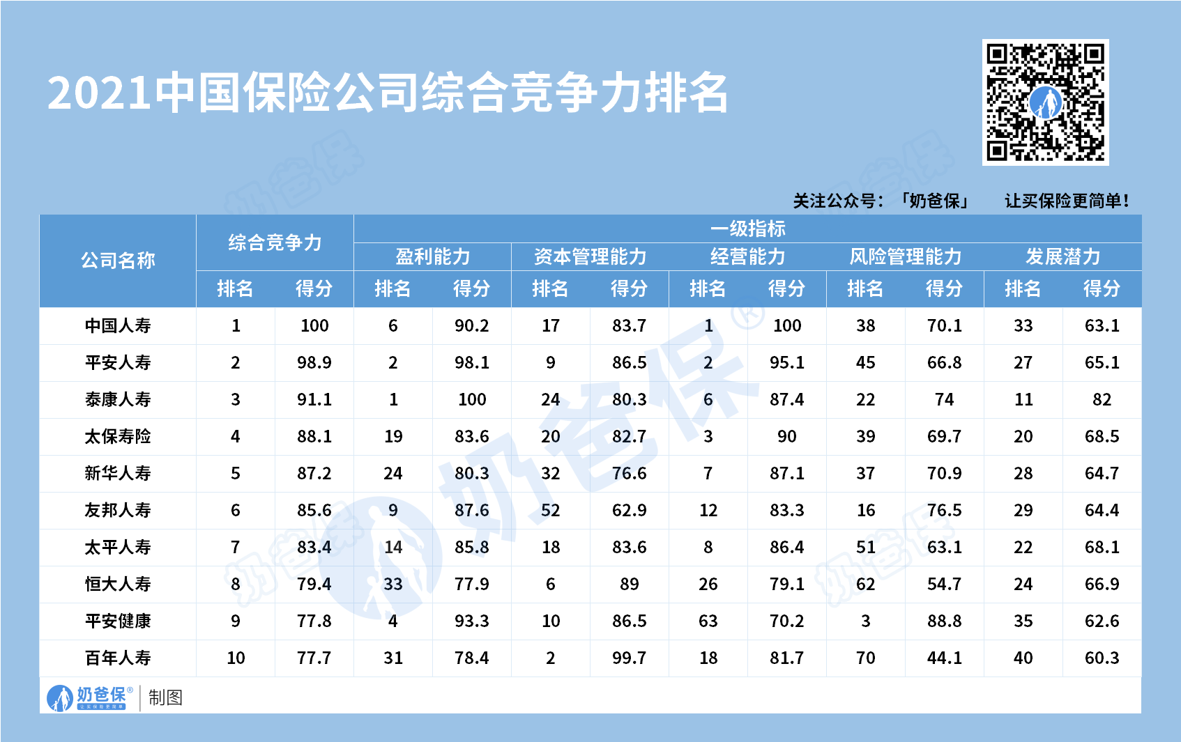 从表格中我们可以看到,综合实力最强的是中国人寿,其次是平安人寿。