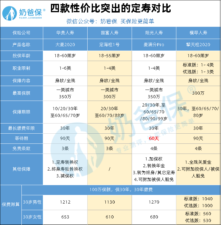 定寿的保障很简单,一般只保身故和全残,奶爸总结了4个挑选要点: