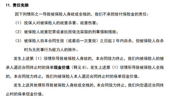 瑞和2020的免责条款只有3条:故意伤害、故意杀害、违法犯罪等情况下免责,比其他同类产品的免责条款更有优势。