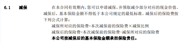 而且被保人可在合同有效期内,申请减少保额,但基本保额不能低于公司规定的最低标准: