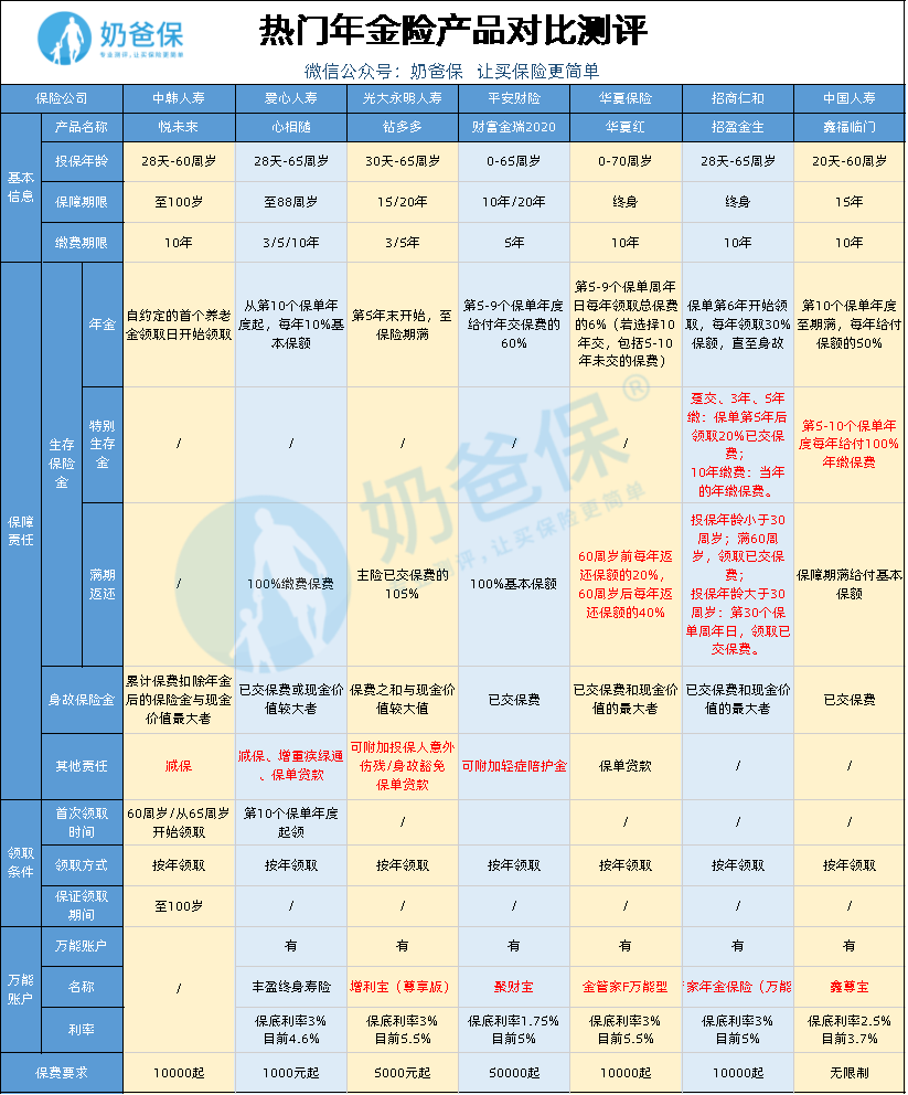 〡热销年金险产品对比