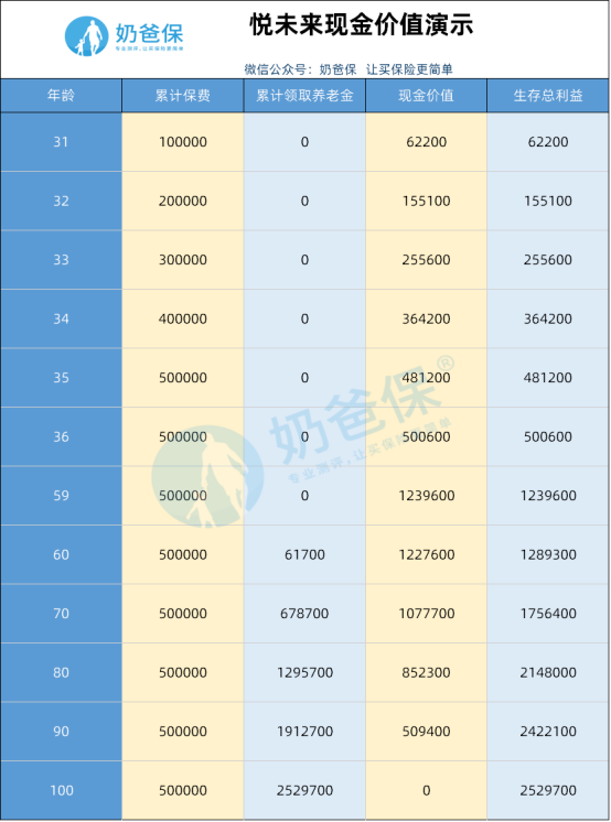 再来看看,如果从出生就买入这款年金险,收益是怎么样的: