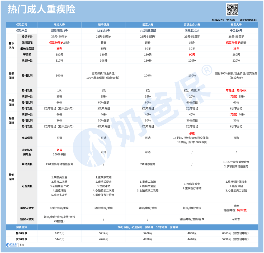 今天,奶爸为大家精心整理了6月份的重疾险榜单,包括适合成人和儿童的产品。