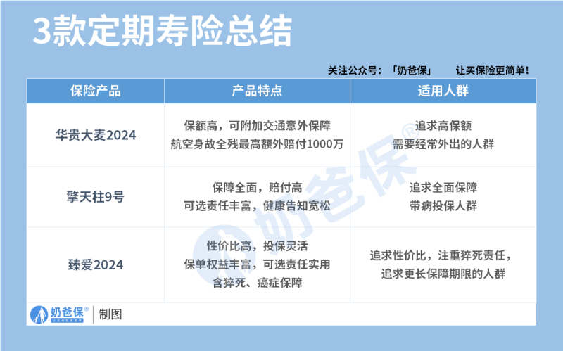 目前,市面上定期寿险产品并不多,奶爸综合对比后,给大家选择了三款: