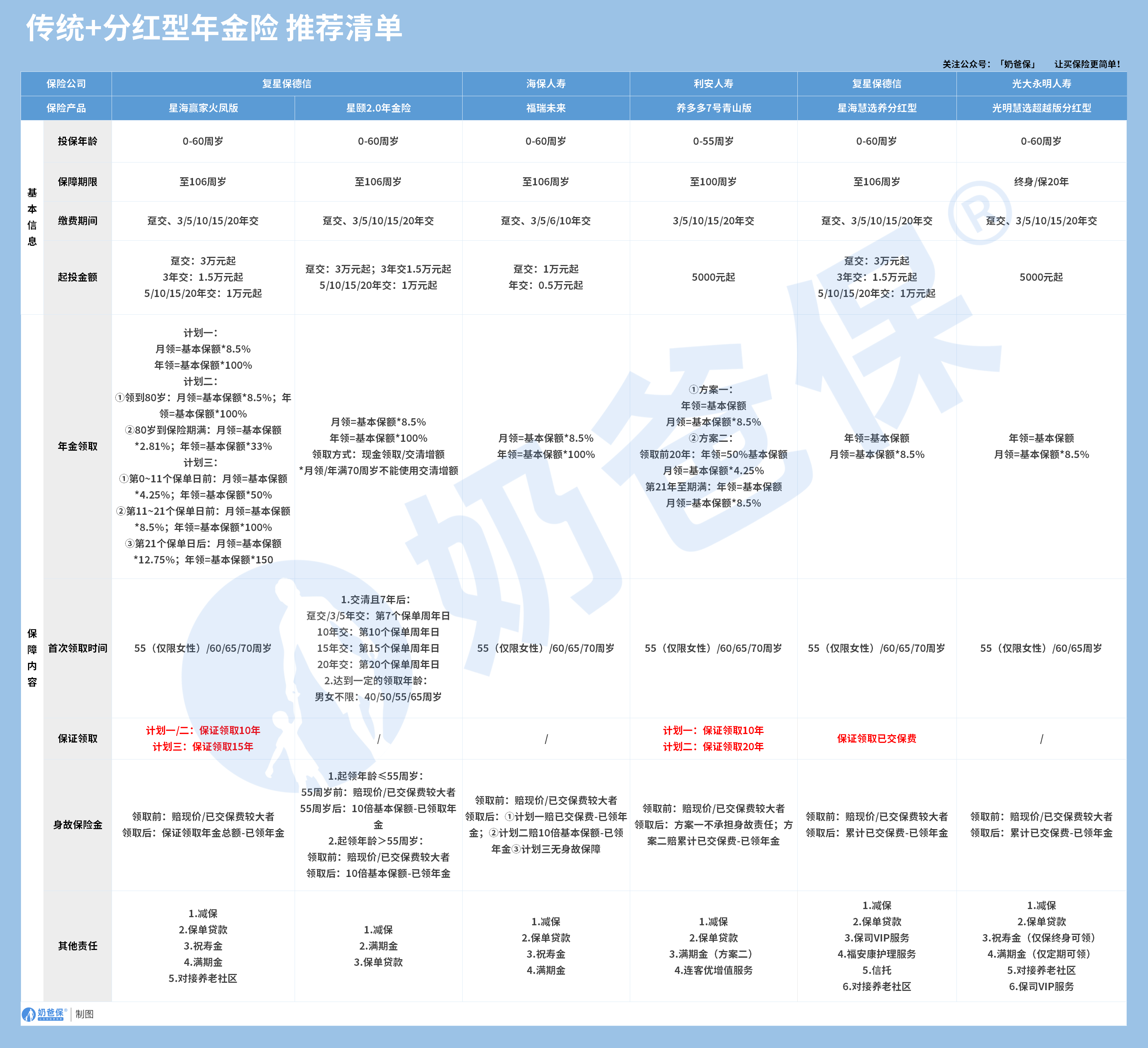 起领时间早:趸交、3/5年交,最快保单第5年起,就能开始领取养老金,6/10年交则是缴费期结束就可以开始领取年金