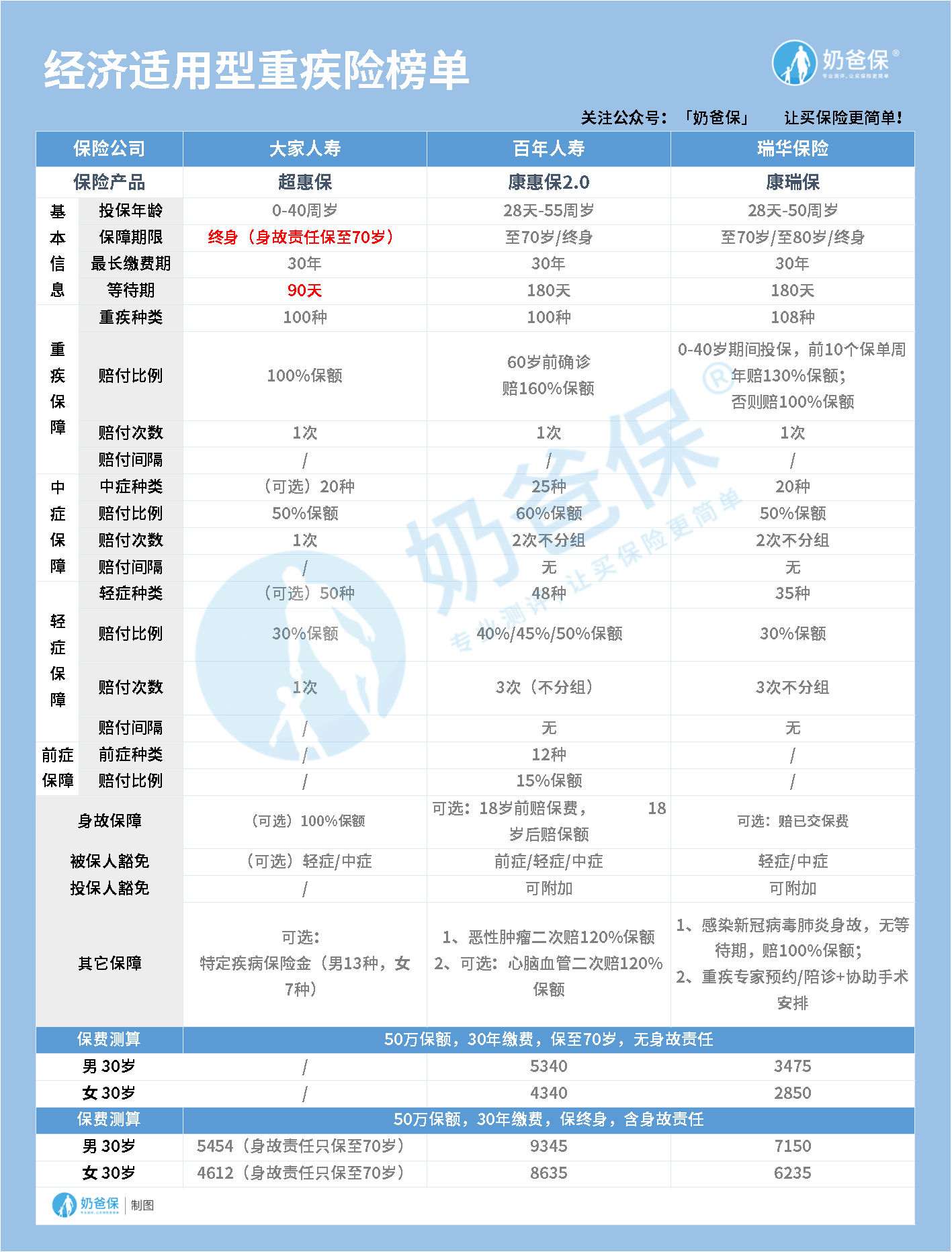 以下3款经济适用型的重疾险,在选择定期版本的情况下,不用花很多保费,就能得到比较全面的保障,性价比不错。