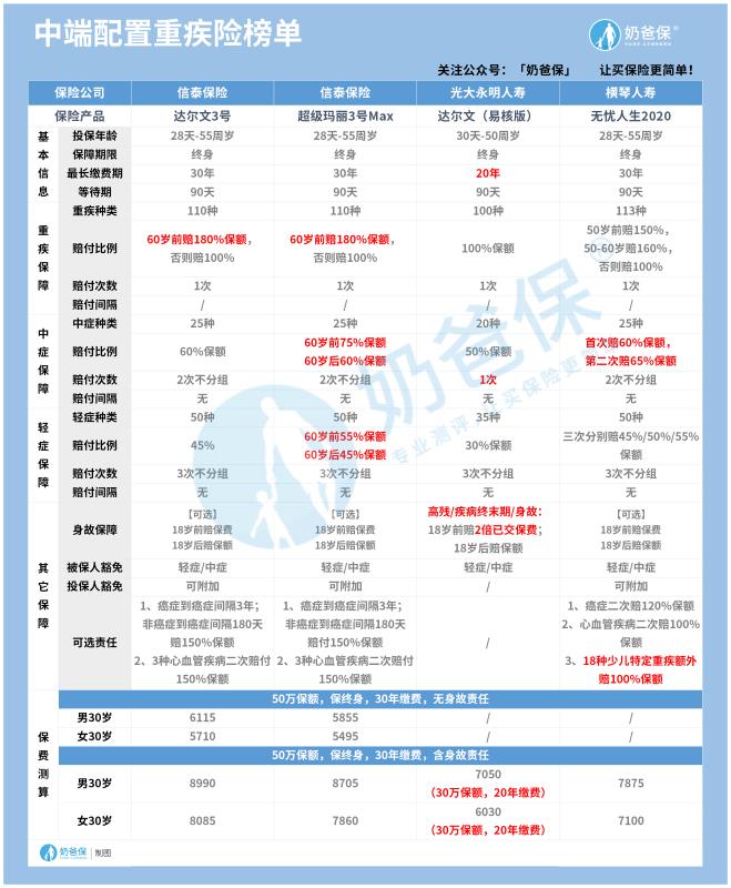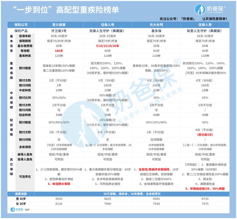 奶爸整理出了一些保障更充足的中配重疾险,供大家参考。