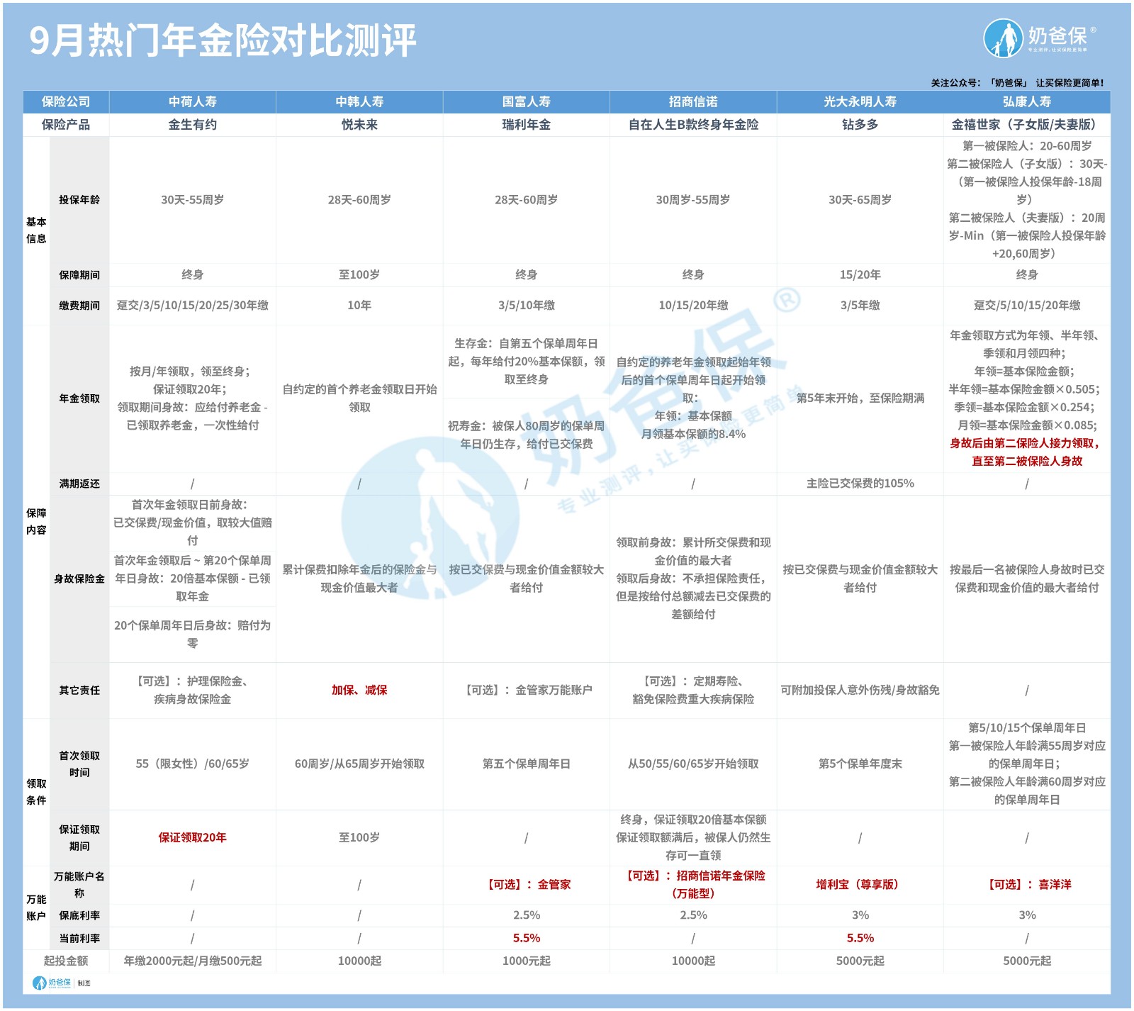 奶爸直接带大家看看9月值得关注的年金险: