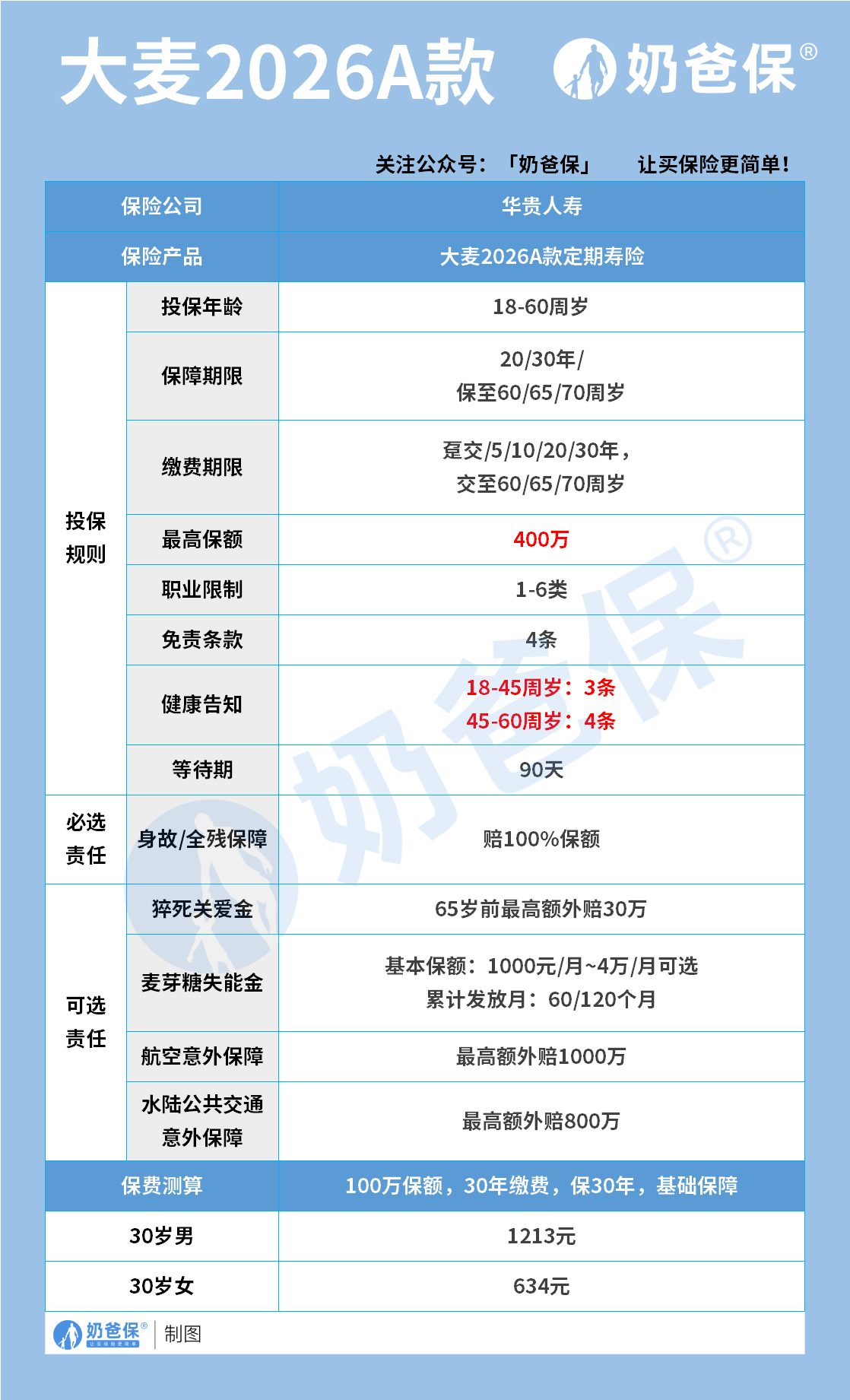 单从保额上限来看,大麦2026是最高的,上限是400万。
