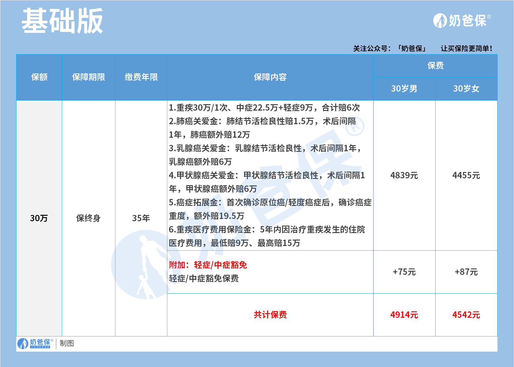 预算少,基础版+轻中症豁免也能涵盖核心风险;