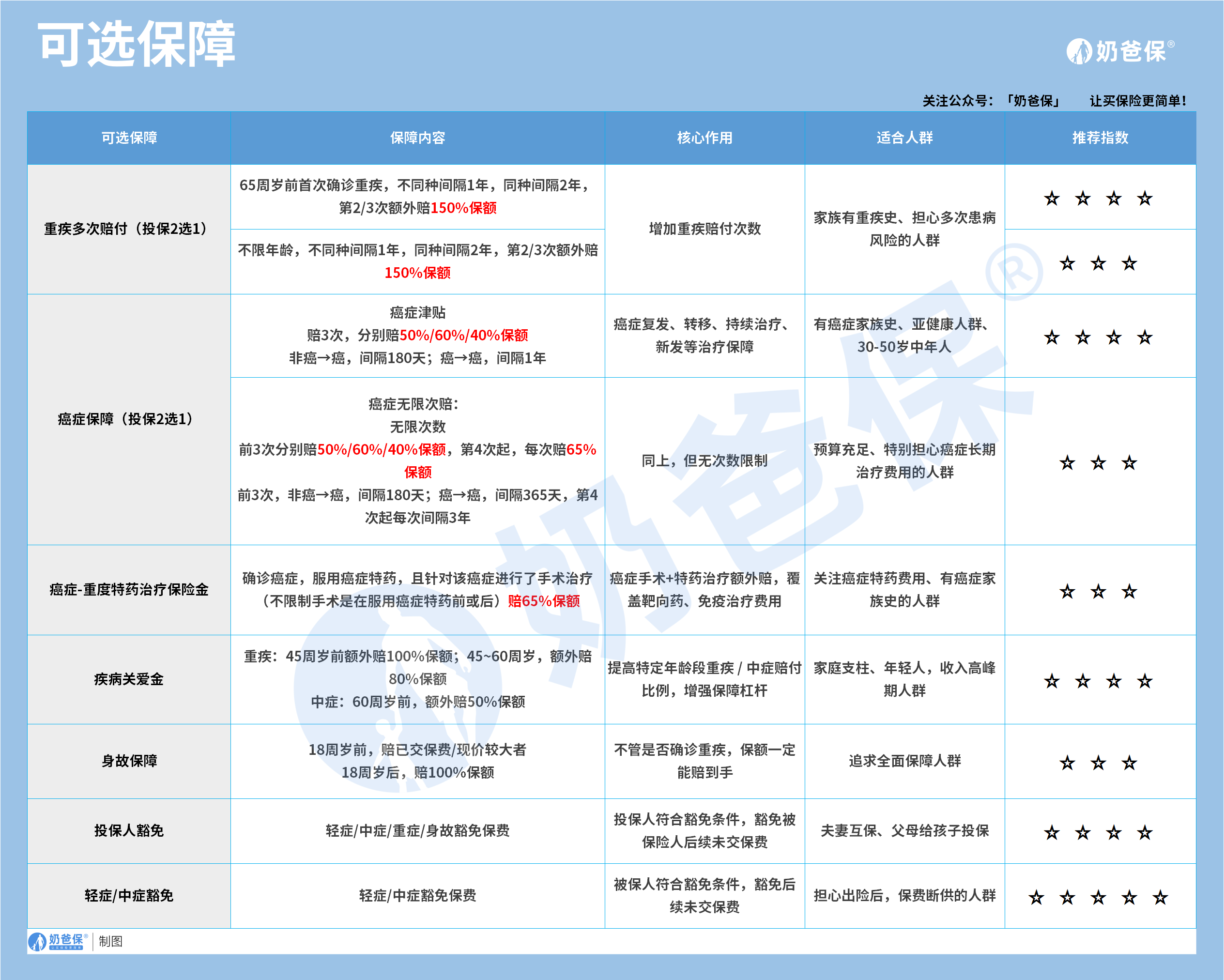 都是目前市场上热门可选保障内容,实用性强。