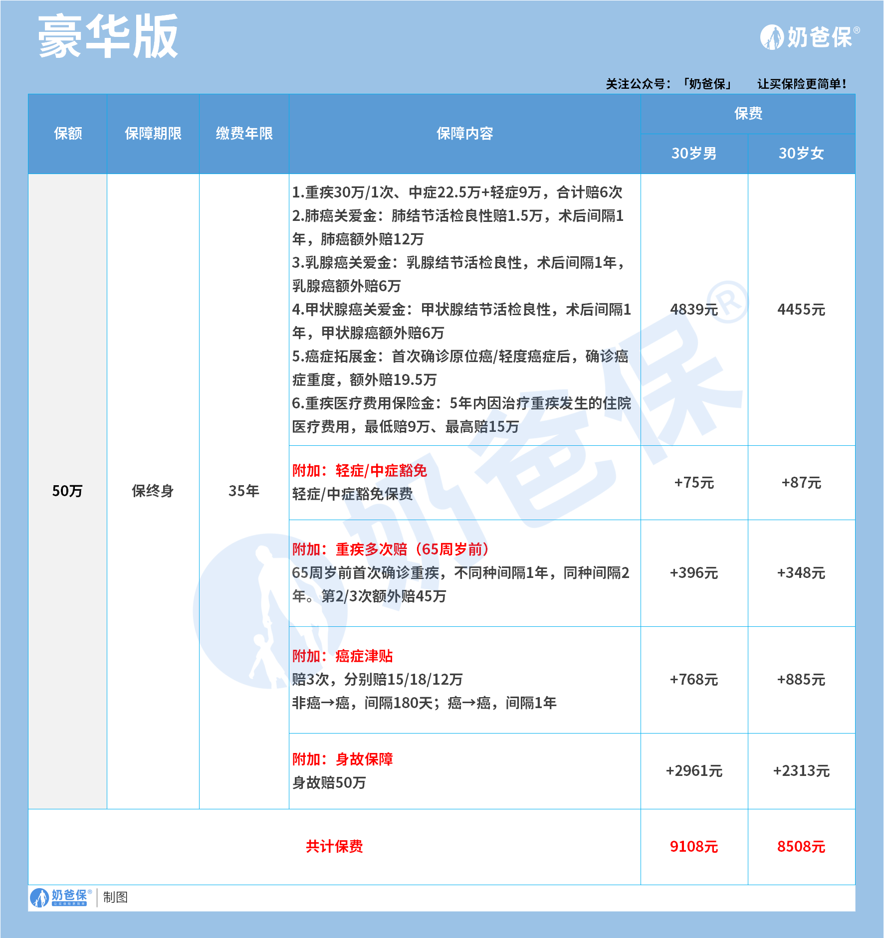 豪华版,各种可选保障叠加覆盖一生担忧。