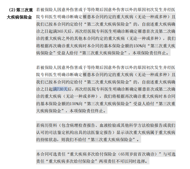 4、重疾多次给付细节