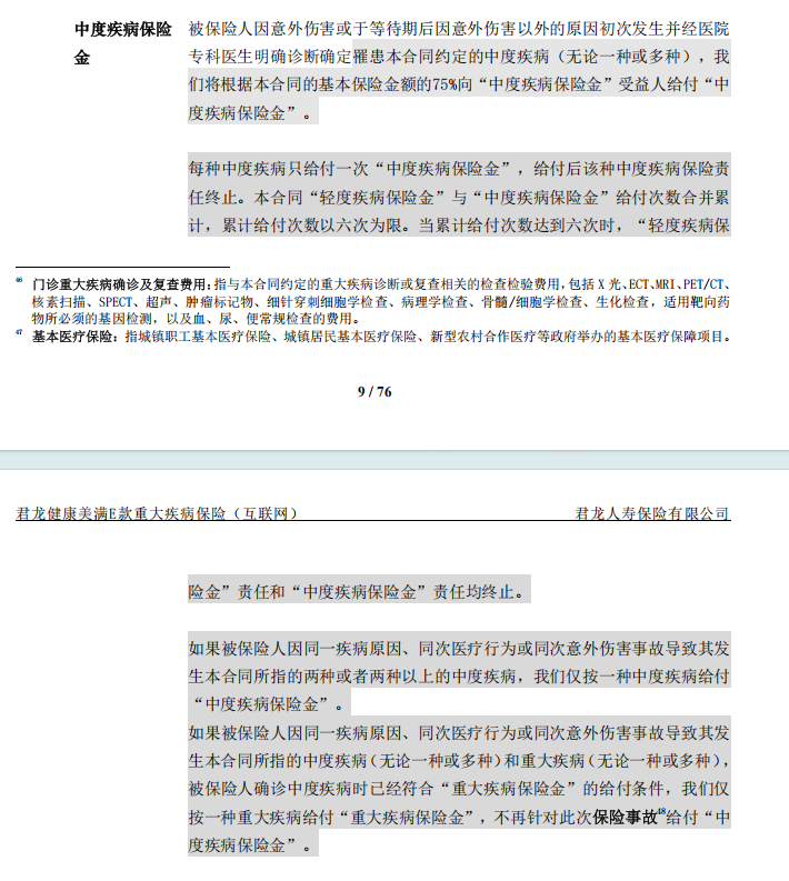 中度疾病保险金与轻度疾病保险金的条款约定里。