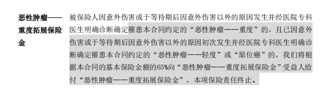 除此之外,产品还自带恶性肿瘤重度拓展保险金这一必选责任,