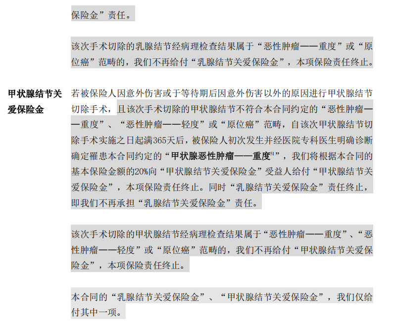 可以说是目前市场上,少有的三大高发结节都有保障的产品。