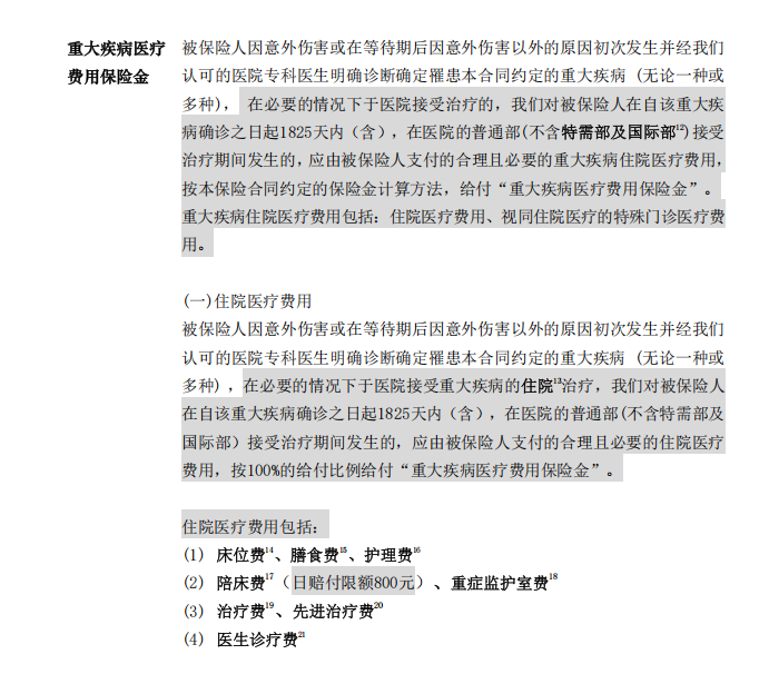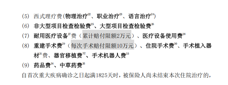 除此之外,条款还对部分医疗费用设置了分项限额,耐用医疗设备累计赔付限额超级玛丽16号2超级玛丽16号万元,重建手术费每次赔付限额超级玛丽16号10超级玛丽16号万元,陪床费每日赔付限额超级玛丽16号800超级玛丽16号元,这些细节都会直接影响实际报销金额。