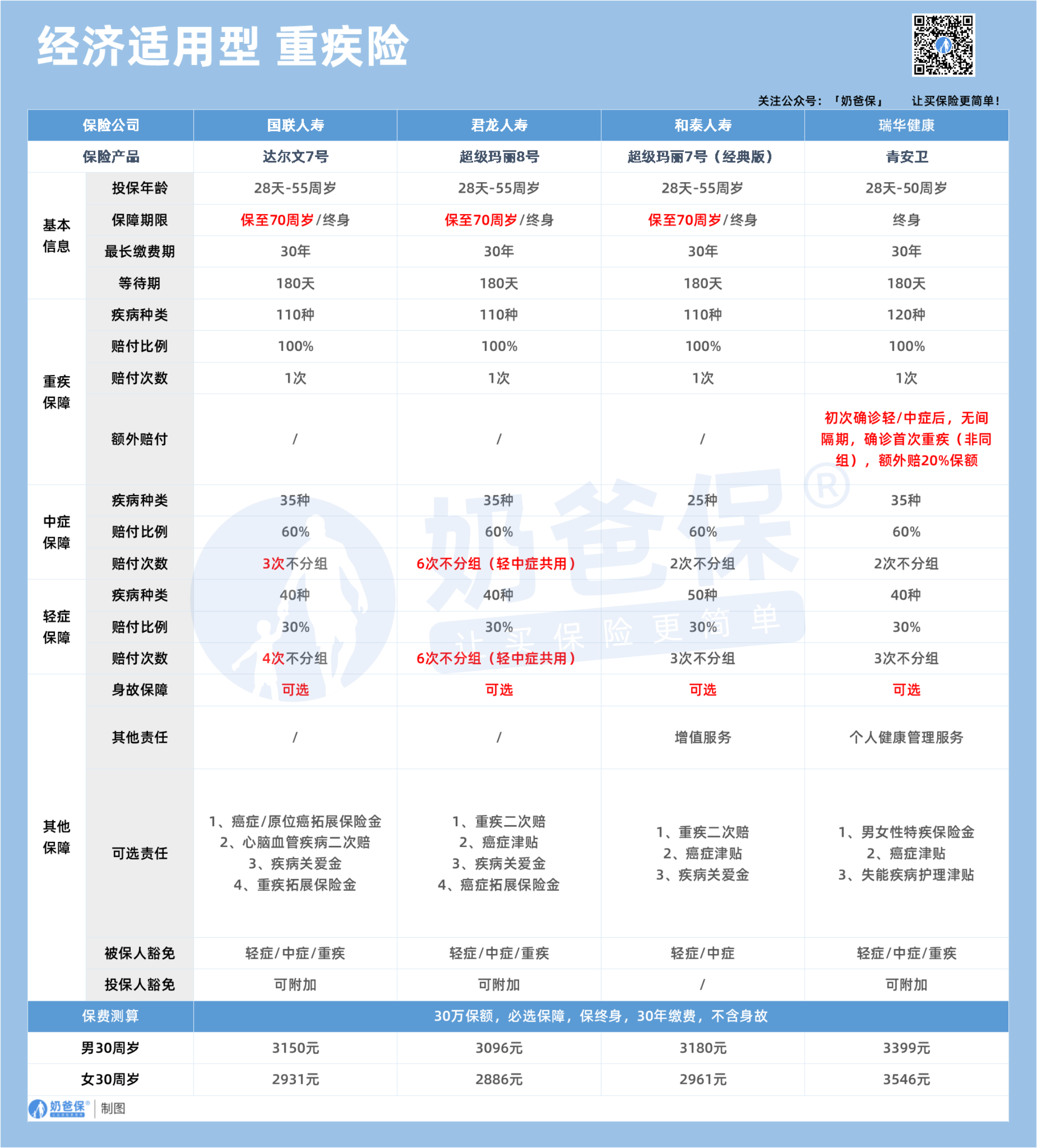 如果想了解更多重疾险产品的话,可以看看奶爸整理的重疾险榜单: