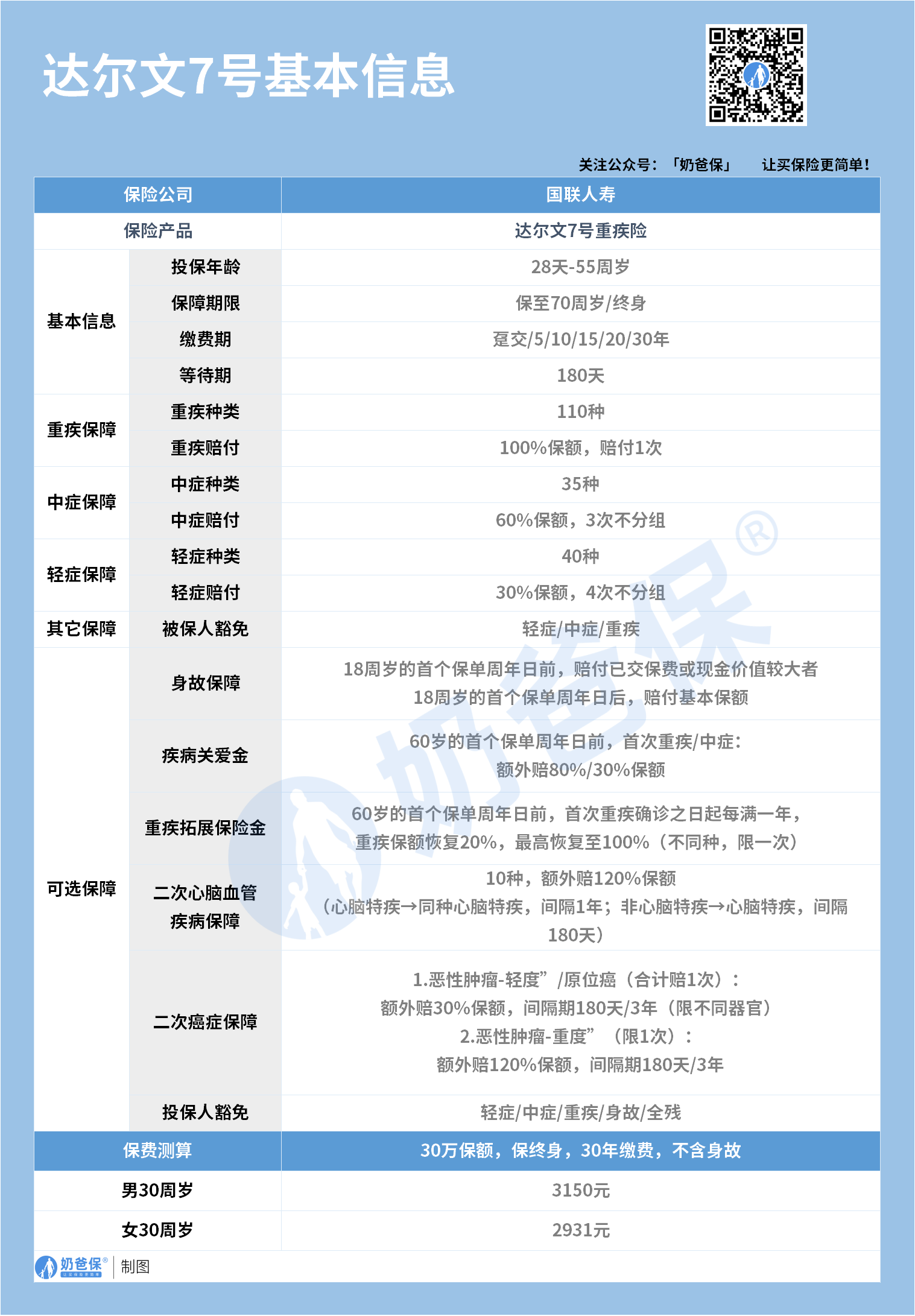 其他内容大家可以参考表格,若是想了解更多国联达尔文7号重疾险的信息,可以来私聊奶爸。