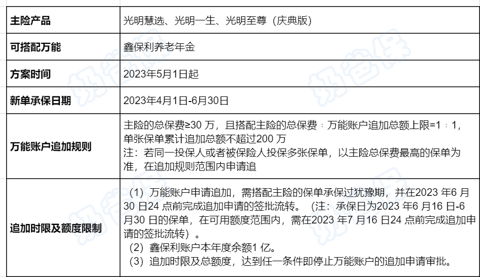 需要注意的是自2023年5月1日起,凡2023年4月1日至6月30日投保的指定产品,只能关联鑫保利万能险。