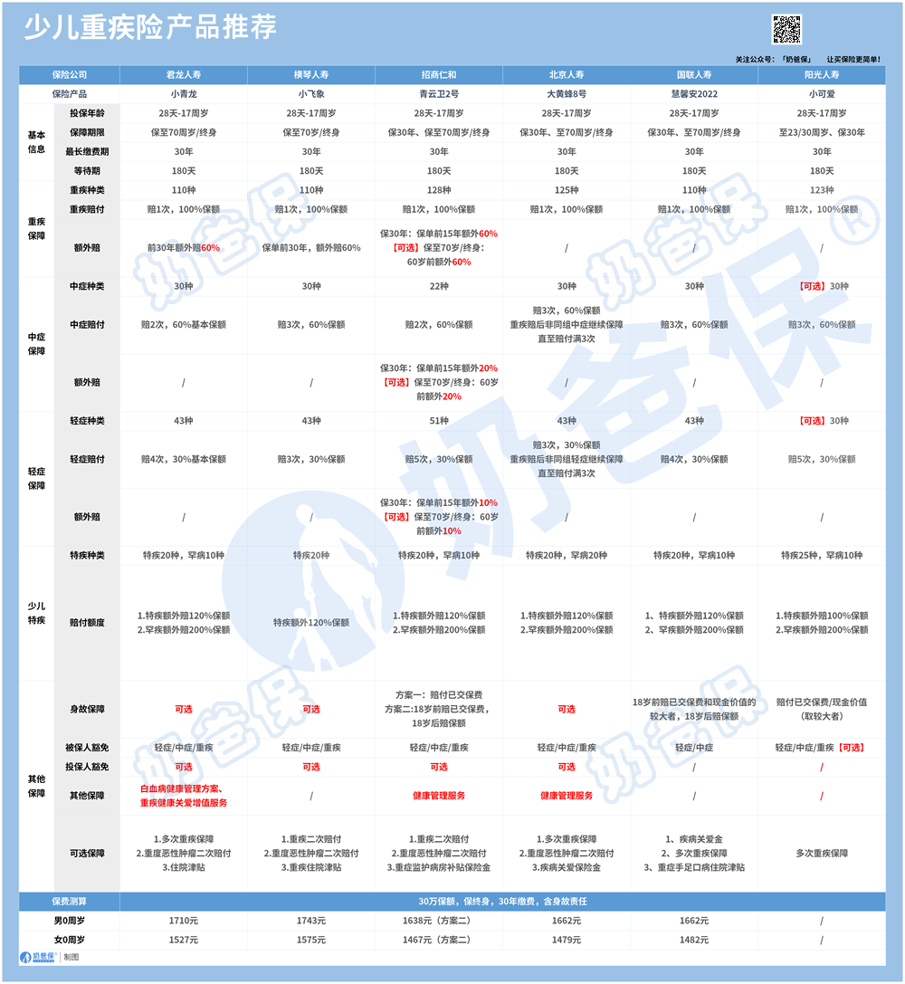 如果大家感兴趣的话,可以关注以下几款专为儿童设计的重疾险产品:
