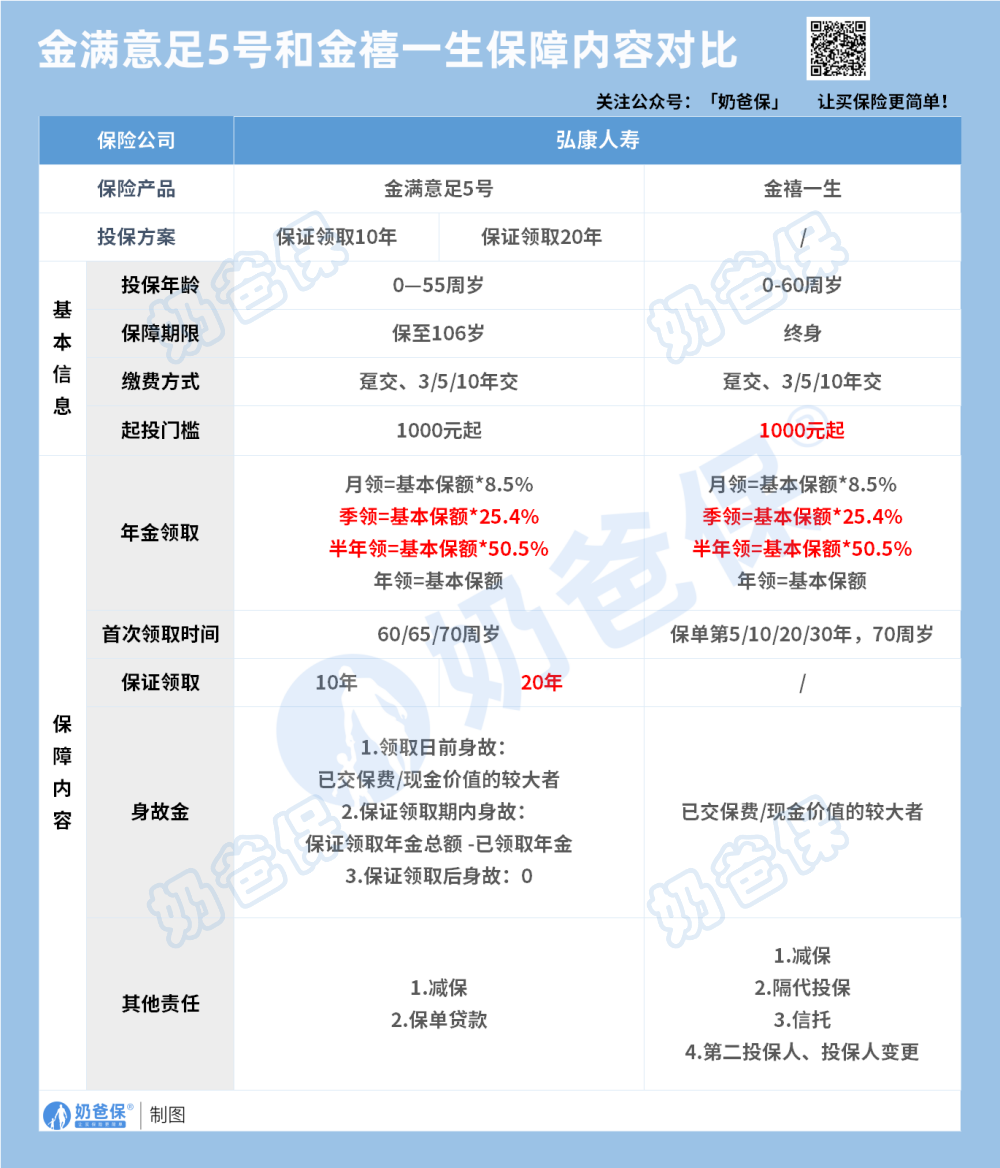 金满意足5号和金禧一生各有优点,区别如下: