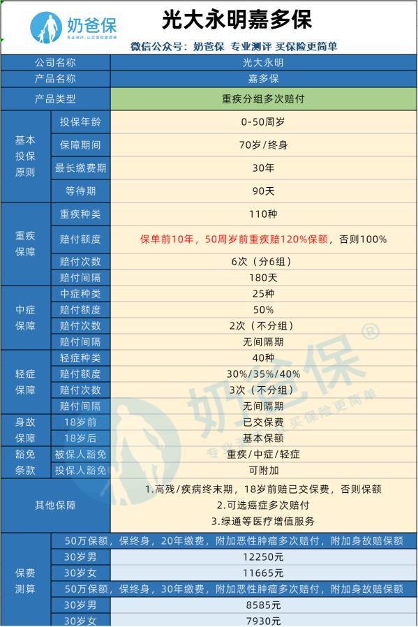 想要投保多次赔付重疾险的朋友可以优先考虑光大永明嘉多保这款产品。