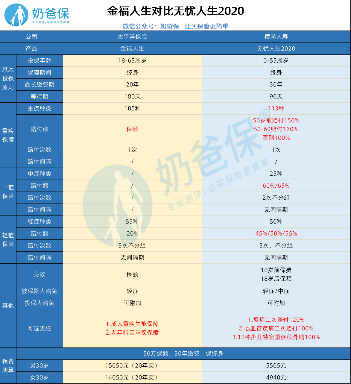 这位朋友你好,关于金福人生对比无忧人生2020,应该怎么选?的问题,奶爸在这里整理了有关金福人生和无忧人生2020的相关内容,希望对你有帮助: