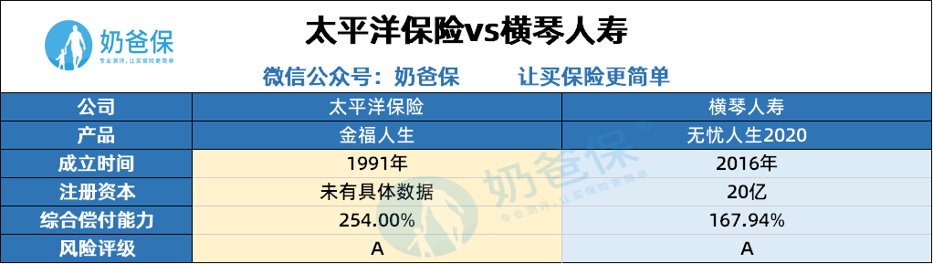 太平洋是国内比较老牌的保险公司,1991年成立,横琴人寿是2016年正式运营,相比之下。