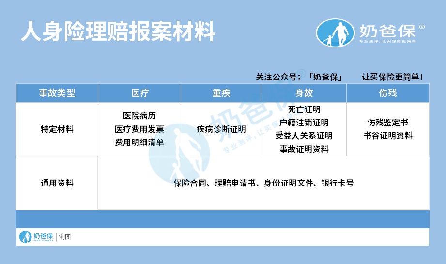 当我们在出险后需理赔时可照上表内容,去准备该险理赔资料