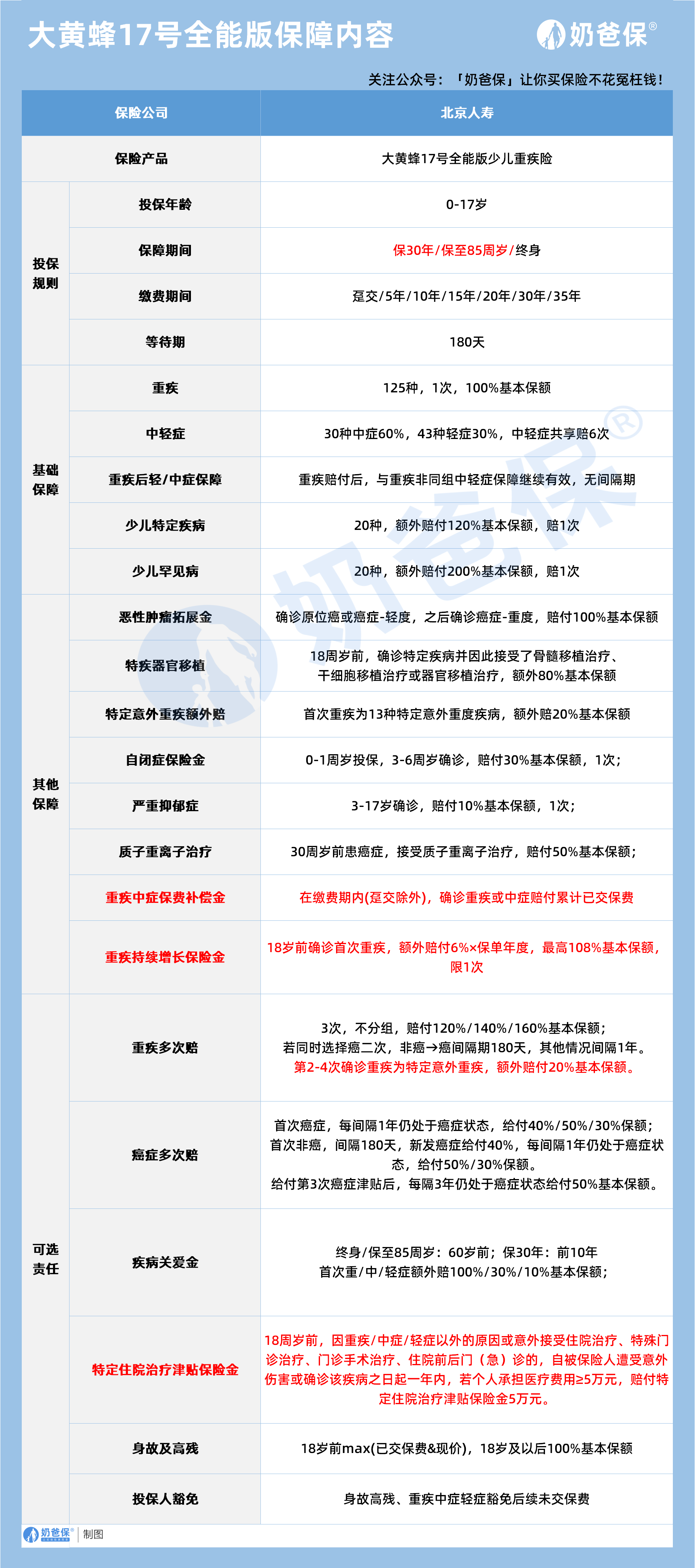 很多家长给孩子挑重疾险时,都会关注大黄蜂 17 号全能版这款少儿重疾险。