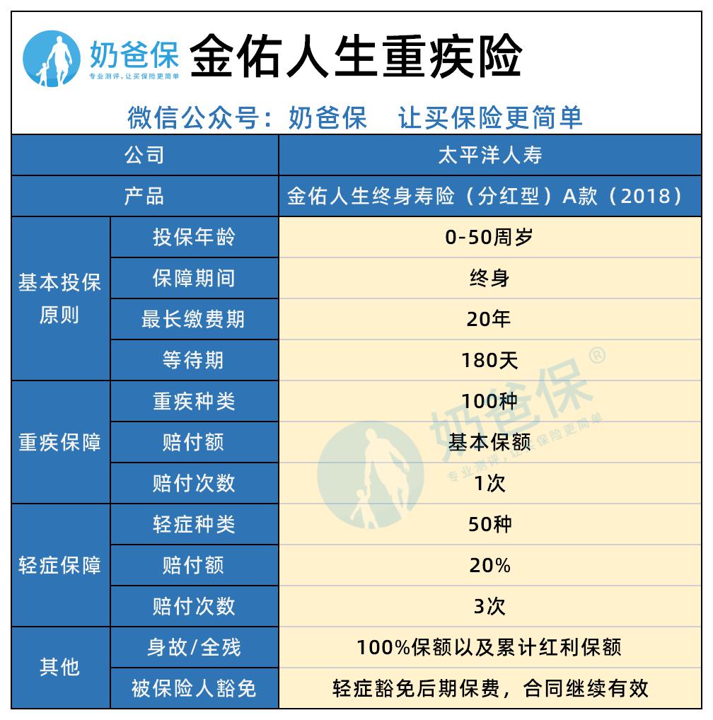 虽然“金佑人生”是太平洋保险旗下产品,大牌子有保障,缴费期限宽,重疾险保额高。