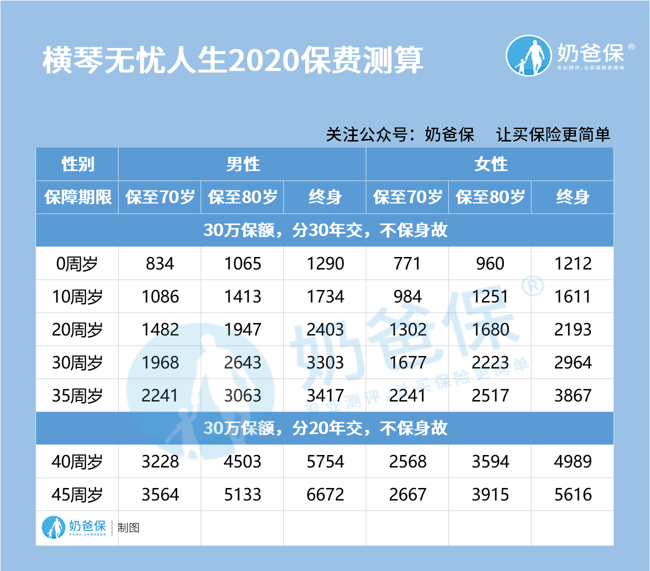 如果大家挑选保险有什么困难,可以关注:奶爸保公众号 进行1对1咨询,现在关注“奶爸保”公众号,回复“官网”,还可以免费领取价值199元的保障大礼包哦,让您买保险变得更简单。